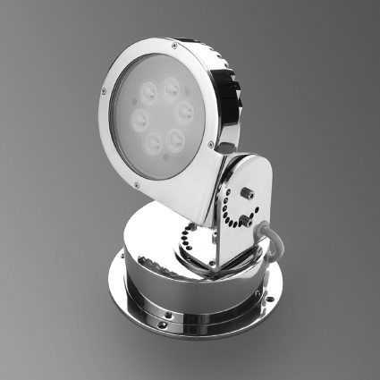 The Atlantis Near Water series is specially designed to light objects around pools, fountains, and water features or near the sea with high power LED light. The series is made of solid 316L stainless steel and can therefore withstand these rough environments. Standard finish is polished stainless steel to avoid collection of dirt and algae, but a brushed finish is also possible. The series comes as recessed, surface mount or spots. The spots are heavy duty with stainless steel brackets for sturdy fixing. A specially developed power cable ensures for a long lifetime in extreme conditions without any ingress of water. The low voltage electronic LED driver is housed in the base of the fixture. The LEDs used come in 3 different tones of white, as well as blue, red, green, amber or RGB. Several lenses from 6 to 40 degrees are available to choose from to achieve the desired the light effect.
